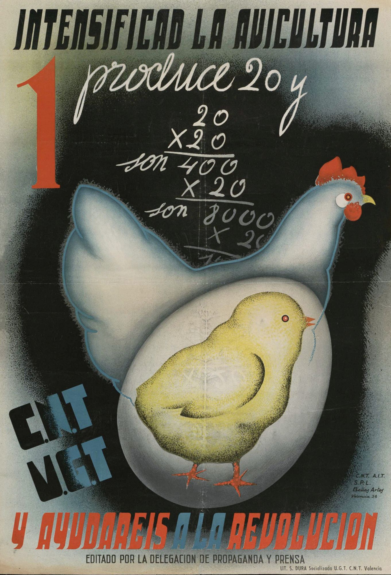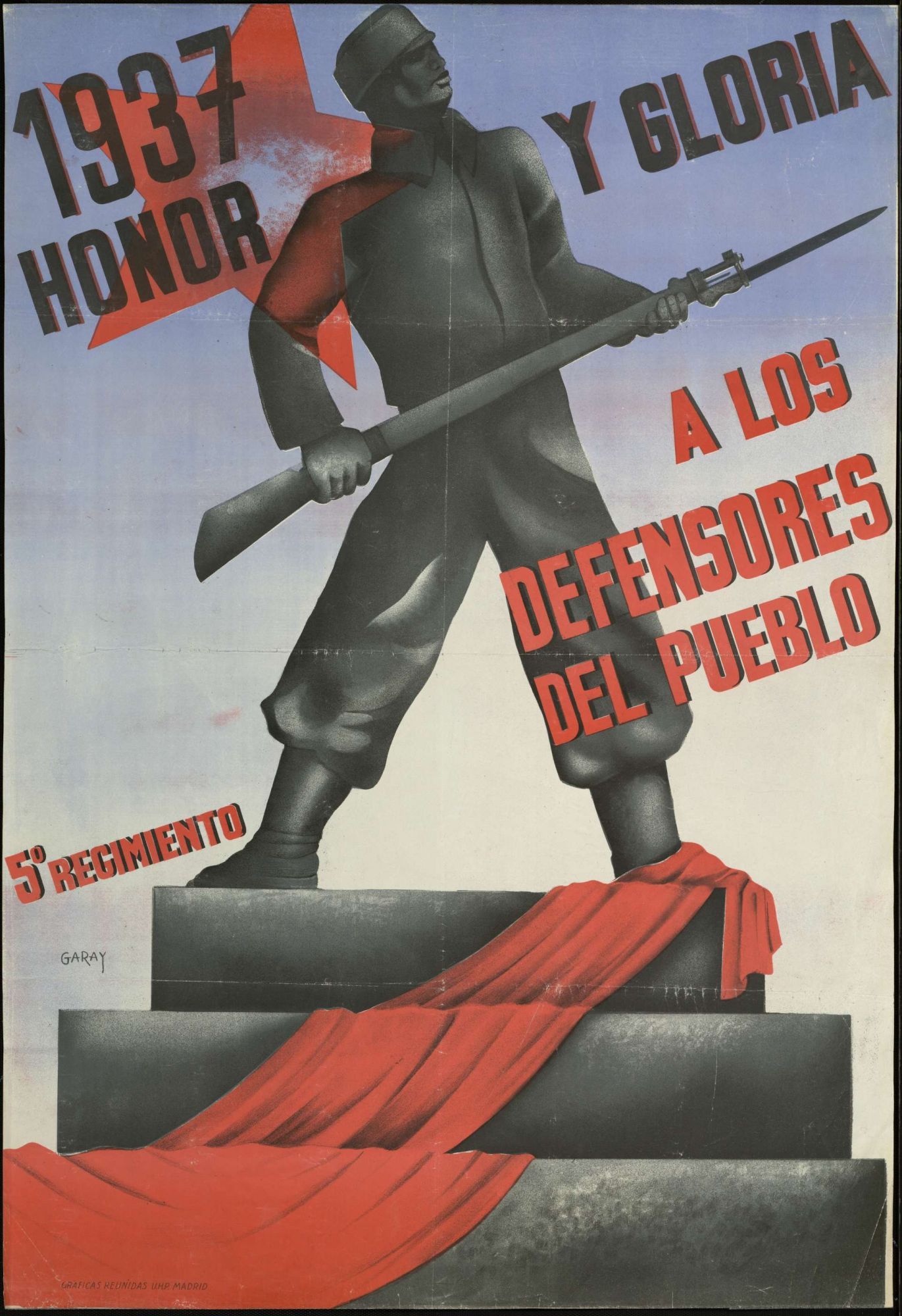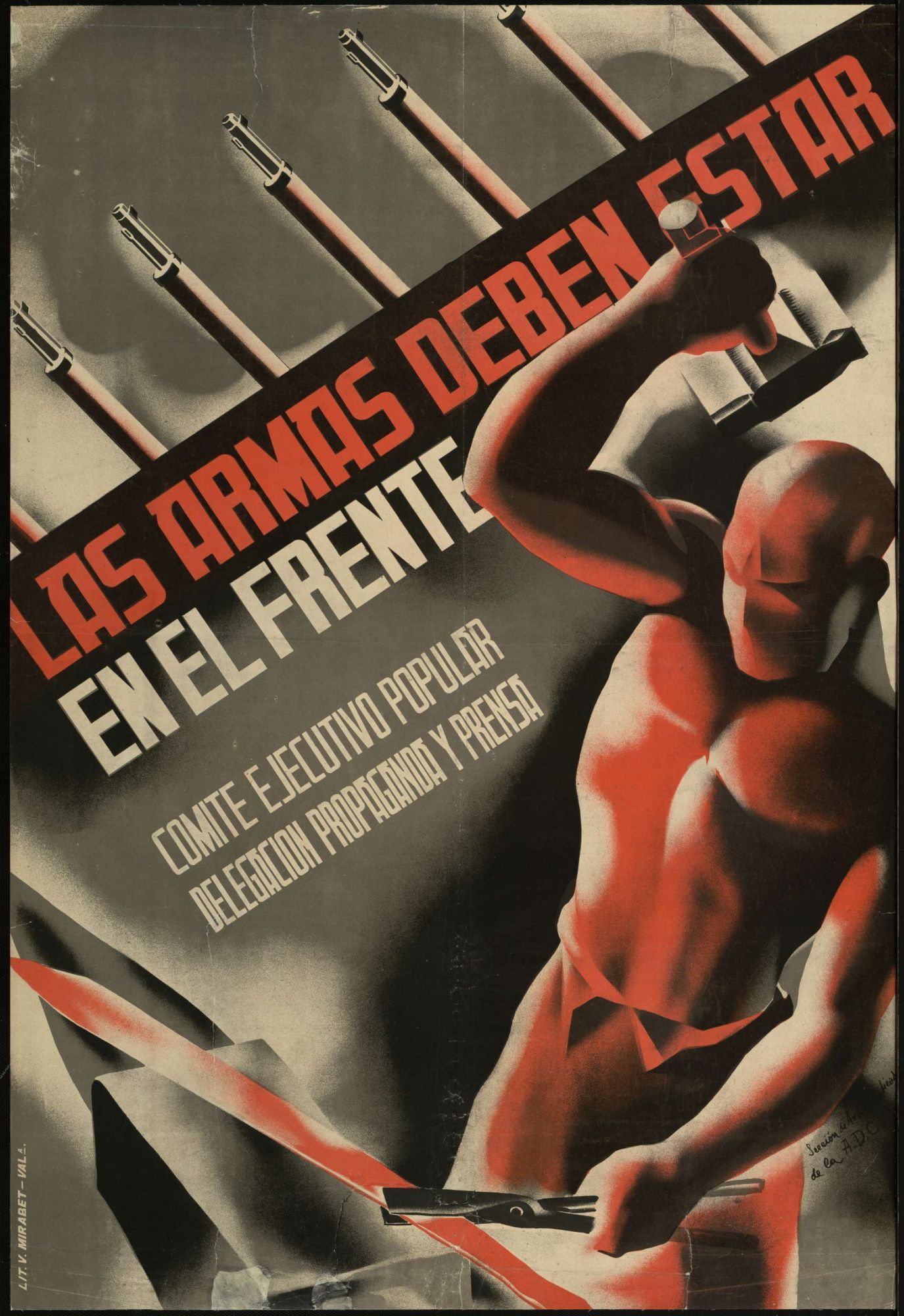 L’entre-deux-guerres est une période particulièrement féconde pour ce qui est de la propagande par l’affiche et l’influence des graphistes de la Révolution russe est assez perceptible. Les affiches républicaines font preuve d’une très grande inventivité face à celles, très classiques, des forces franquistes. Elles sont les œuvres de graphistes réputés, comme Garay, Melendreras, Pedrero, Briones, Cabana, Contreras, Friedfeld, Marti Bas, Renau ou Canavete. On évalue à plus de 3 500 le nombre d’affiches produites du côté républicain.