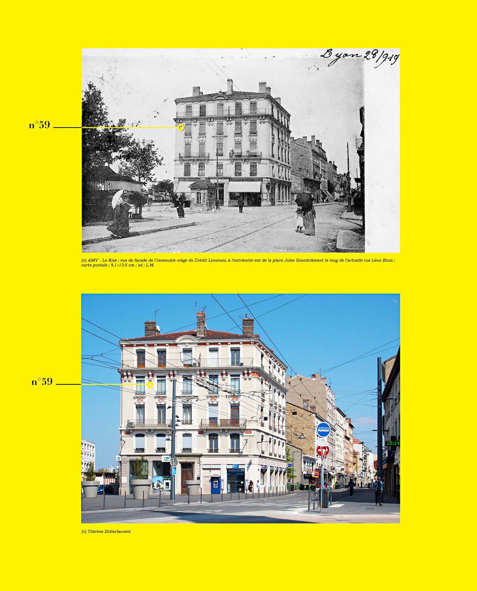 - Fin du XIXe siècle : construction de cet immeuble, qui ferme la place Grandclément côté Est, entre le boulevard Eugène Réguillon et la rue Léon Blum. A droite de l’immeuble, l’agence du Crédit Lyonnais est implantée depuis longtemps, sans doute depuis la construction de l’immeuble. Fondé en 1863 par Henri Germain, fils de soyeux lyonnais, le Crédit Lyonnais prend en 1878 le rang de première banque française. Le bâtiment qui abritait ses archives est aujourd’hui occupé par Le Rize !