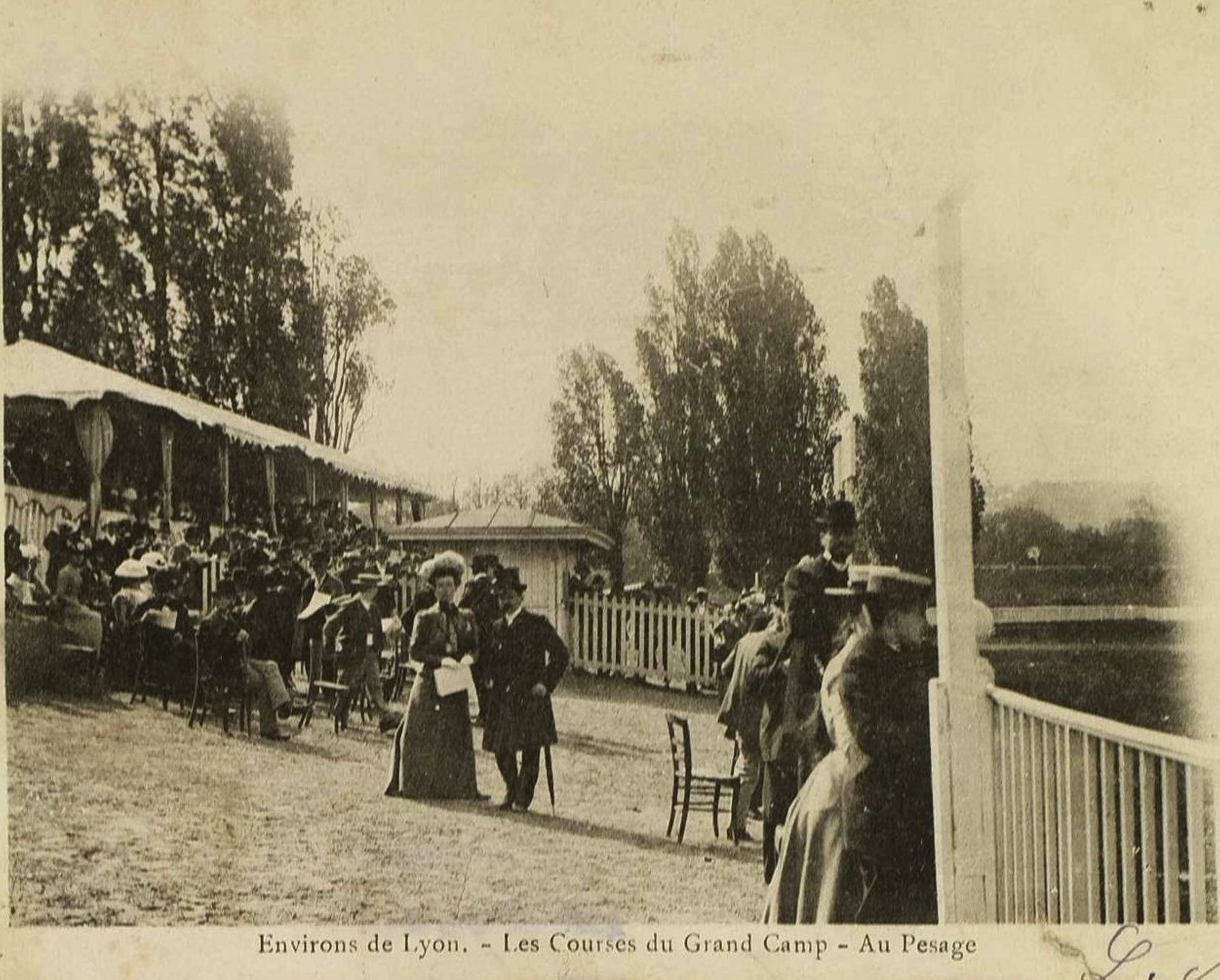 A cette époque, il comportait deux pistes ovales de 1 800 et de 2 800 mètres, l’une destinée au galop et l’autre aux courses d’obstacles. Côté sud, face au parc de la Tête d’Or, des tribunes en bois pouvant accueillir 4 500 personnes, un pavillon pour le pesage des chevaux et de leurs cavaliers, et enfin une série de tentes pour abriter les jockeys, le buffet, les bureaux et le matériel.