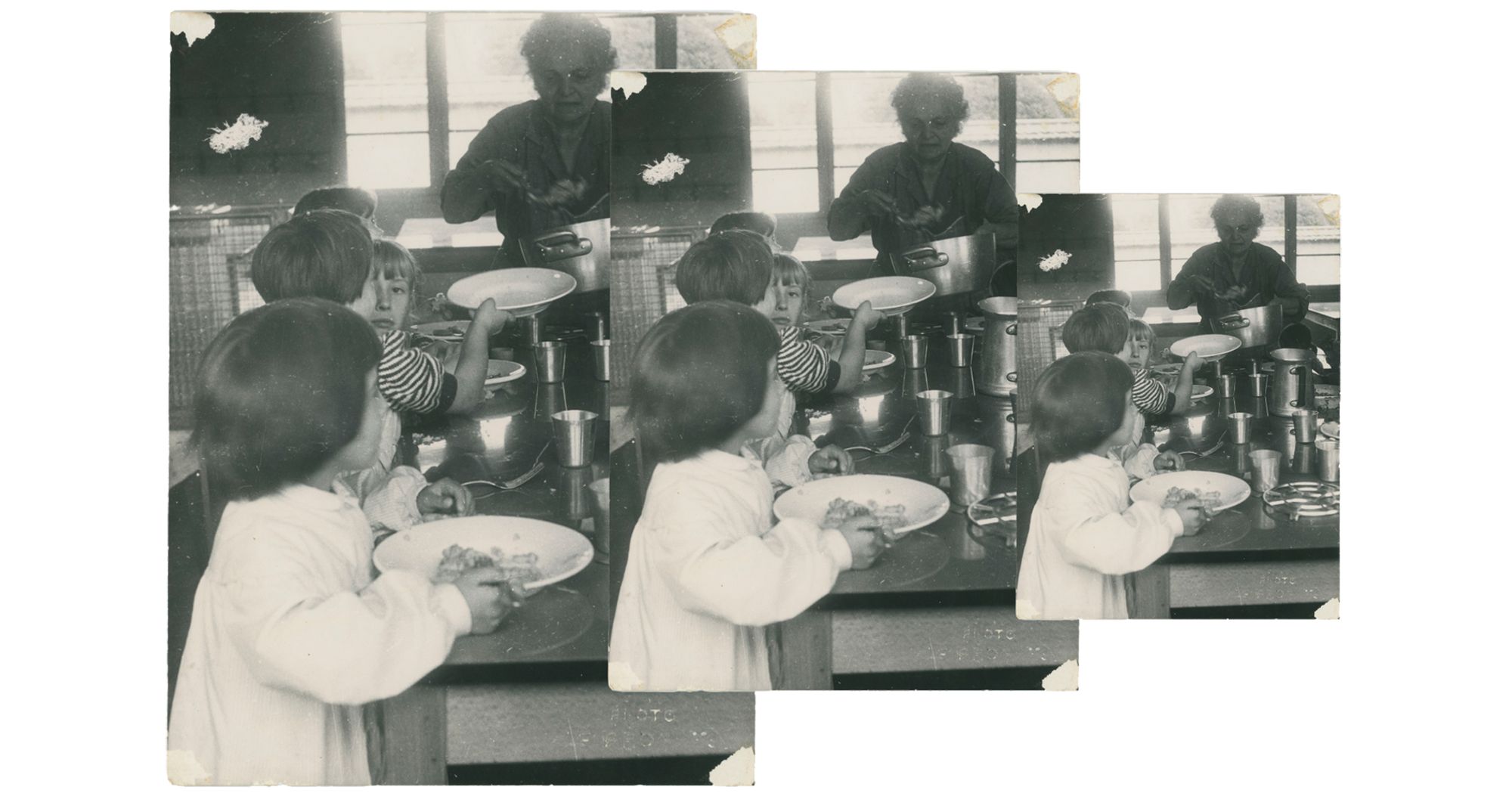 Manon des Archives m’a trouvé plusieurs photographies liées à l’alimentation. Pas beaucoup d’images de famille, mais plutôt des commerces, des cantines, des restaurants de l’ancien temps. Les personnes regardent fixement le photographe. Certains ont l’air de fantômes à cause du flou de bougé. Les regards sont curieux, amusés, les corps disciplinés.