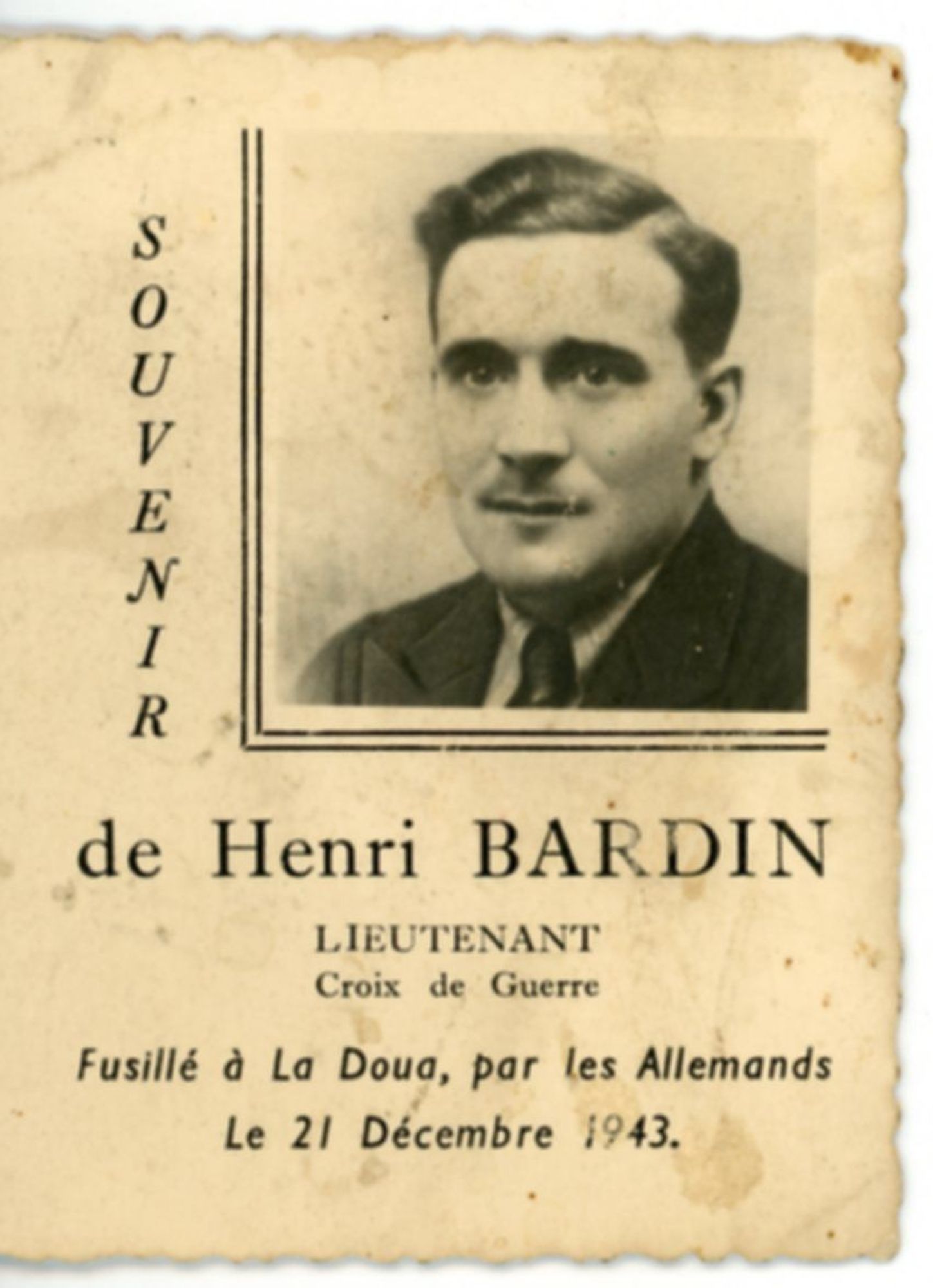 Né le 21 décembre 1903 à Auvet-et-la-Chapelotte (Haute-Saône), fusillé le 21 décembre 1943 à la Doua.