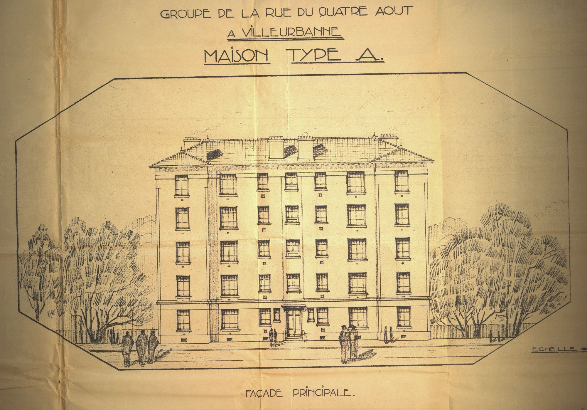 [7] « Inauguration du groupe des HBM départementales de la rue du Quatre-Août », Bulletin Municipal Officiel de la ville de Villeurbanne, juillet 1939, n° 159, p. 4112.