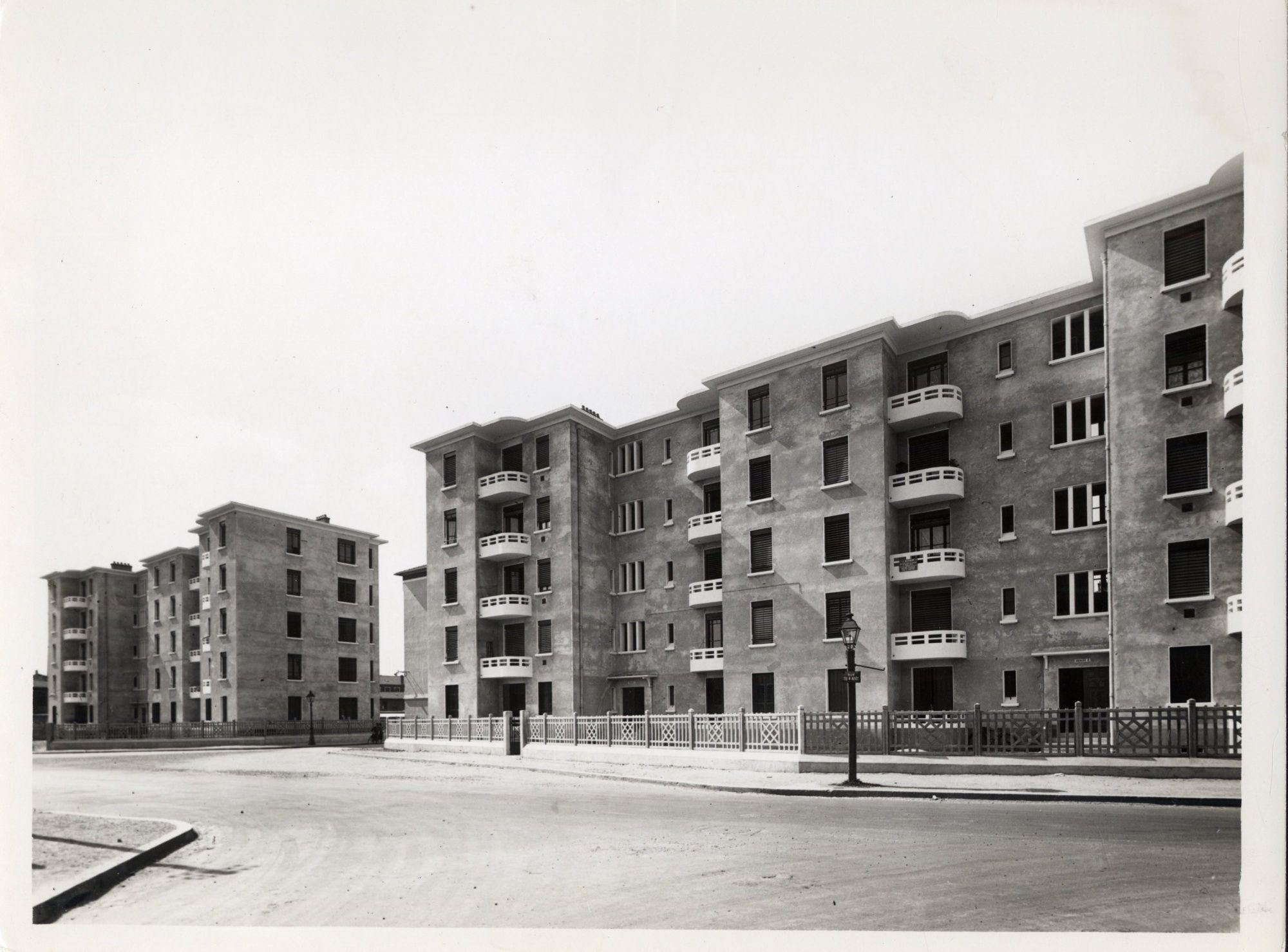 Le projet est confié en 1932 à l’architecte Auguste Hamm qui œuvre notamment à Villeurbanne pour la construction de logements sociaux. Les travaux, autorisés le 28 novembre 1934[6], débutent par la construction de huit habitations proposant 140 logements. Les résidences sont achevées et habitées dès 1936. Afin de desservir les habitations, l’Office départemental des HBM ouvre une impasse privée de 144 m de long et de 14 m de large. Elle conduit à des portes piétonnes qui permettent un accès au cours Émile-Zola.