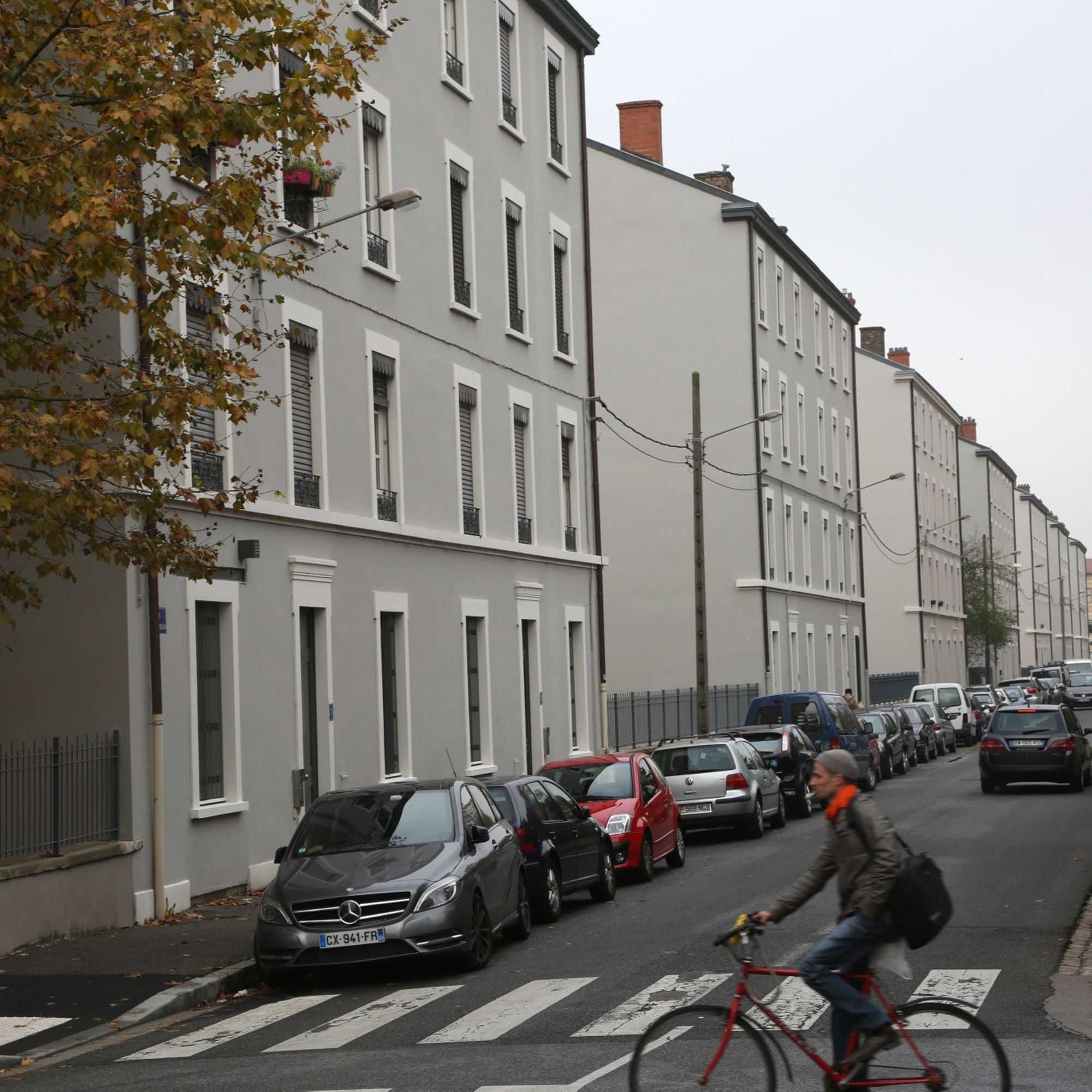 Aussi, lorsqu’en 1890, Gillet installe à Villeurbanne les bâtiments industriels d’une teinturerie sur plus de huit hectares, le long du chemin Sautin (actuelle rue du 1er mars), la Société des Logements économiques édifie-t-elle dès 1893, dans l’immédiate proximité rue Camille-Koechlin, sept immeubles collectifs pouvant abriter quelque 400 personnes, sur quatre niveaux, avec quatre-vingt jardinets en pied d’immeuble. Ces logements sont d’abord attribués aux « meilleurs ouvriers », essentiellement des ouvriers qualifiés (apprêteurs, teinturiers, coloristes…).