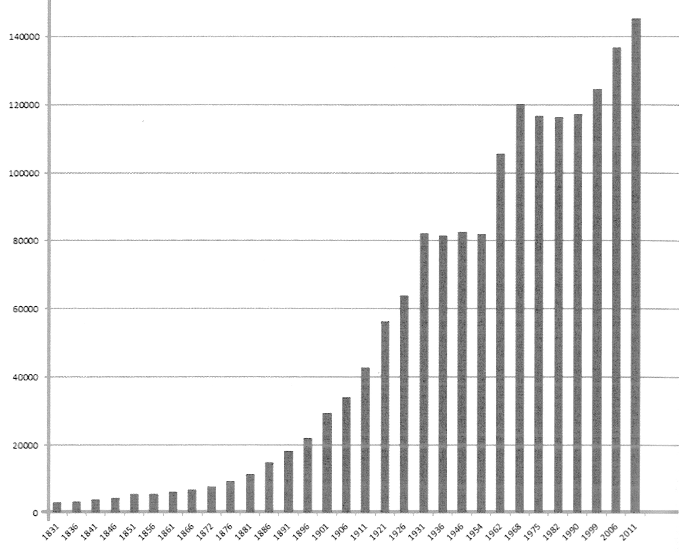 Il est aussi possible de proposer aux élèves un tableau allégé en ne retenant que quelques années, choisies de façon à mettre en évidence le rythme de croissance élevé : 1806, 1836, 1866, 1886, 1901, 1921, 1936, 1946, 1990, 2005.