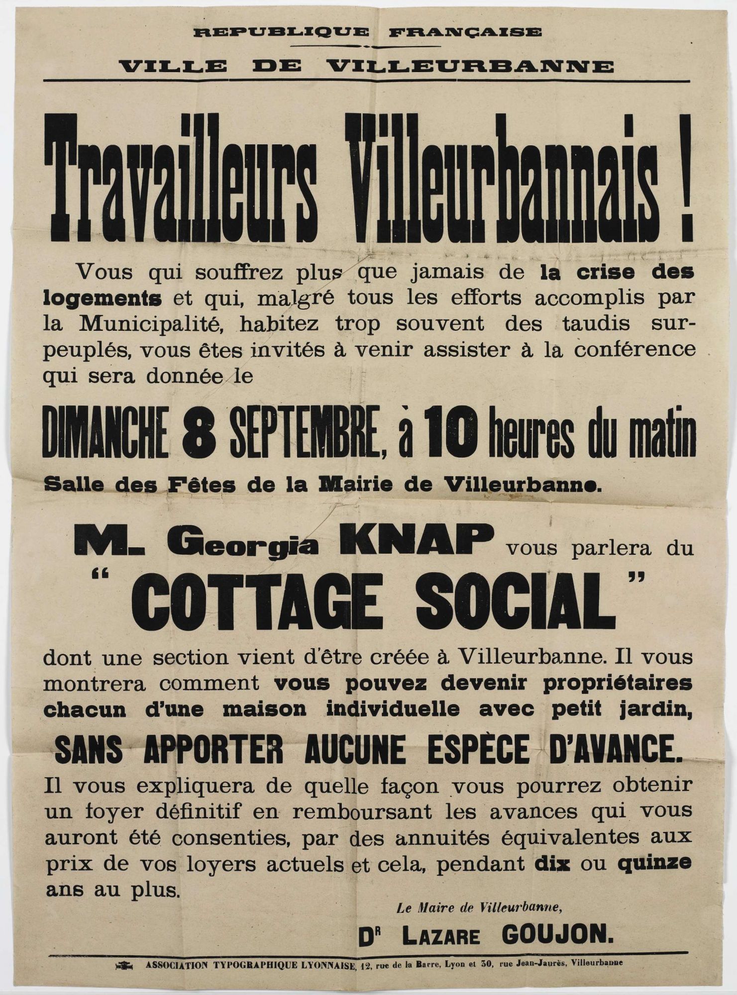 La munipalité encourage aussi la création d'un lotissement municipal, permettant à certains ouvriers d'accéder à l'habitat individuel : les cottages villeurbannais.