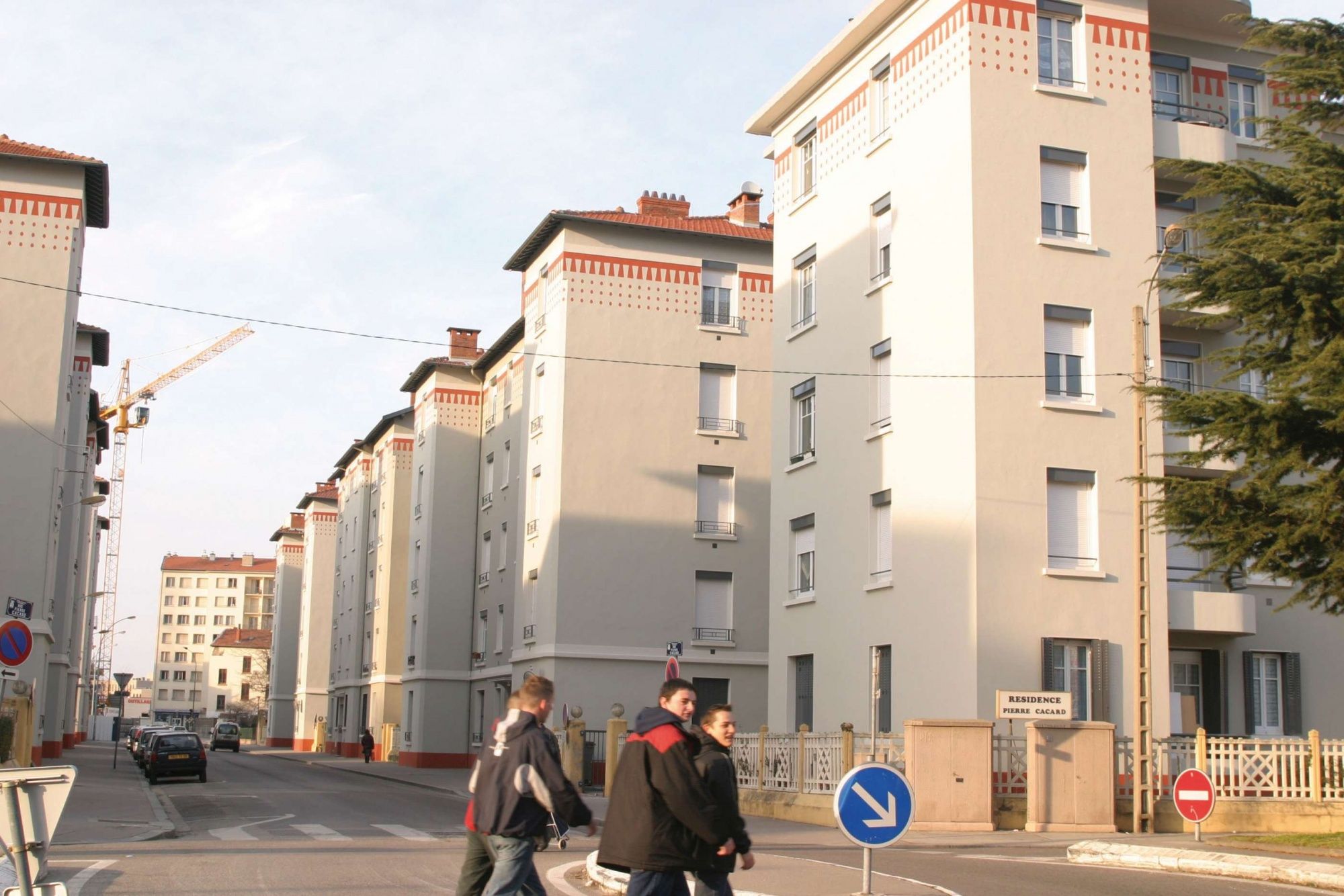 L’ensemble de la rue Michel Servet est livré juste avant l’achèvement des travaux de l’ensemble des Gratte-ciel qu’il jouxte. Il n’est d’ailleurs pas évident aujourd’hui de distinguer l’ensemble HBM, des immeubles Gratte-ciel.