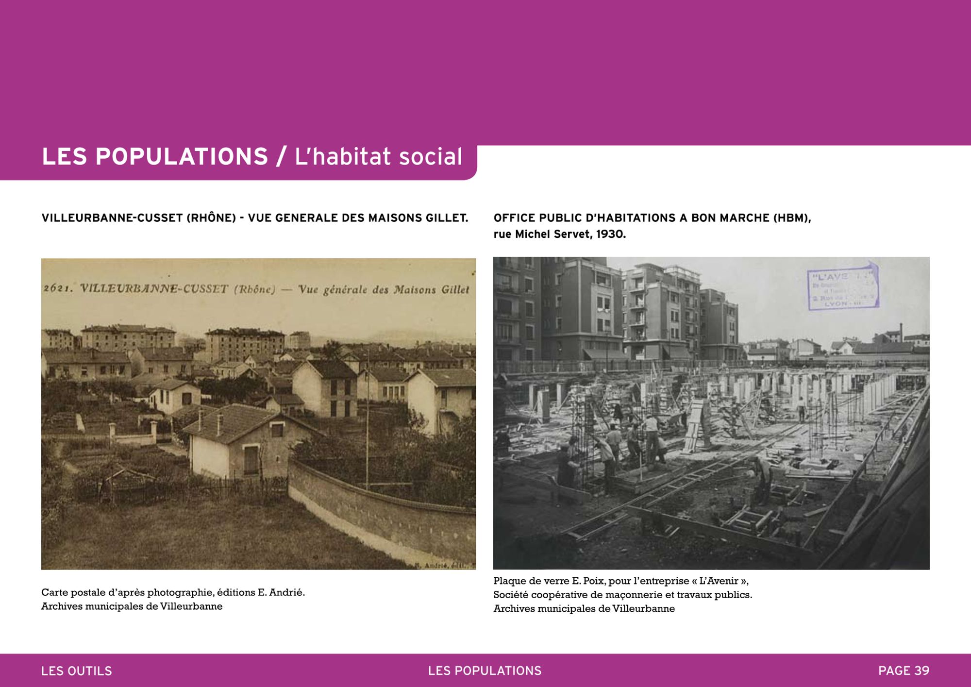 En dehors des rares tentatives paternalistes du genre de celle des cités Gillet, la question du logement ouvrier se pose à Villeurbanne comme dans beaucoup de villes ouvrières.