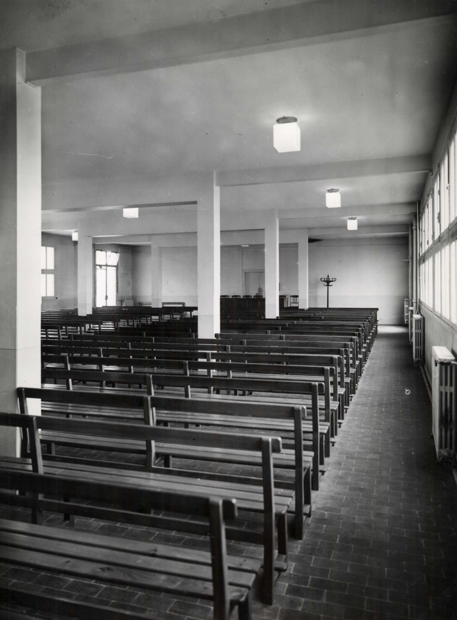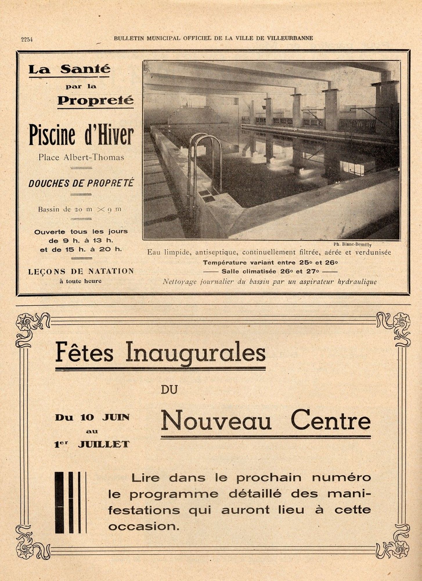 La partie centrale est occupée pour la partie supérieure par une salle de spectacle qui peut contenir 1300 spectateurs. Au-dessous, dans l’entresol très haut, est prévue une brasserie restaurant. Encore en-dessous, est édifiée une piscine. Cela montre l’importance que les socialistes pouvaient accorder à l’accès aux loisirs pour les classes populaires. Nous ne sommes pas loin de l’époque du Front Populaire et de la politique menée par ce gouvernement en faveur des loisirs populaires.